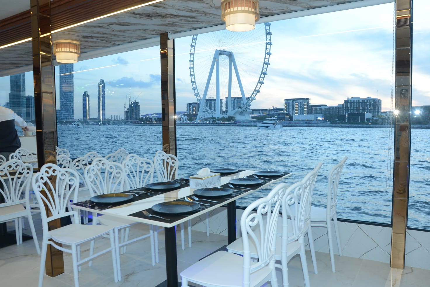 Take in breathtaking views of the Marina Walk and the magnificent Address Hotel as the Dhow boat gently cruises past.