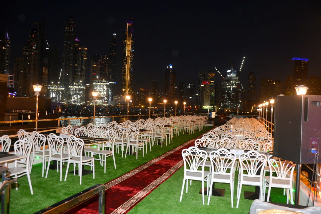 We have arrangements for customizations as well. Enjoy your freedom in planning an event and designing the decoration to make the most out of the Marina Cruise Dinner, Deira Creek, AL-Seef Bur-Dubai, and Dubai Water Canal. Let us serve you to feel special and worthy. Customization starts with playing your preferred soundtracks, arranging indoor games, any specific local or international dish, and leads to booking an event at any hours of the day.